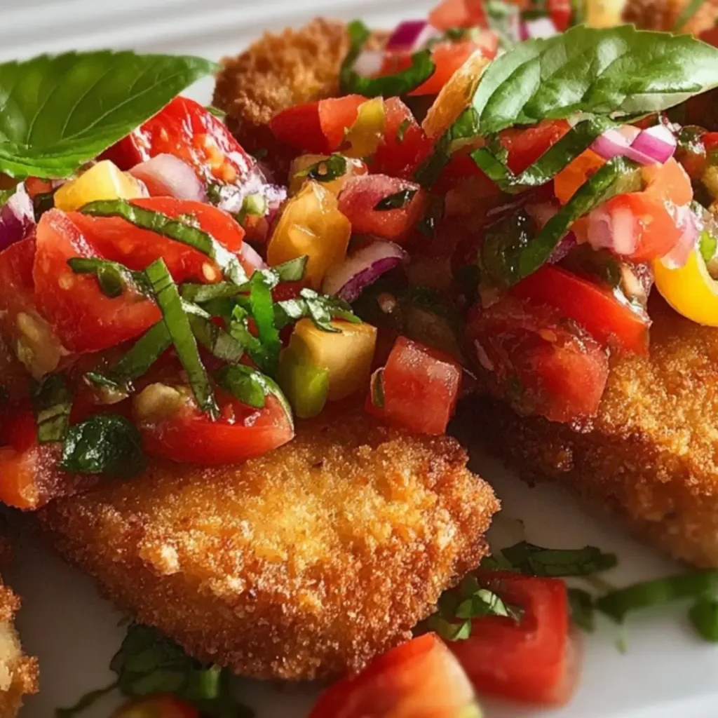 I love serving this Best Bruschetta Fish Sticks Recipe with a simple side salad, dressed with a light vinaigrette. The crisp greens provide a refreshing contrast to the warm fish and vibrant bruschetta, balancing the meal beautifully.